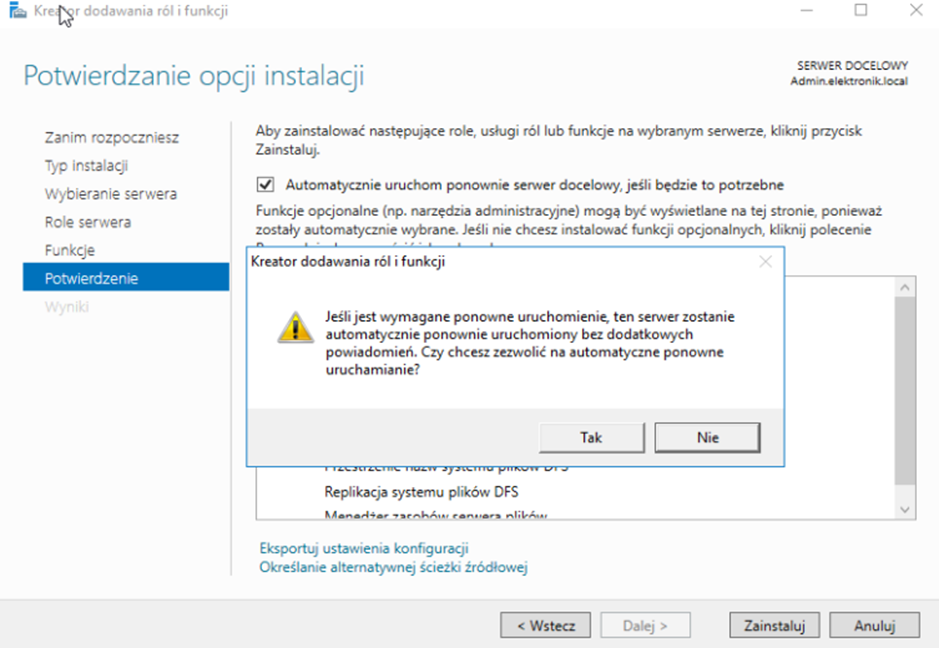 Zaznaczamy restart komputera jeśli zaistnieje taka konieczność, naciskamy „Tak” i „Zainstaluj”