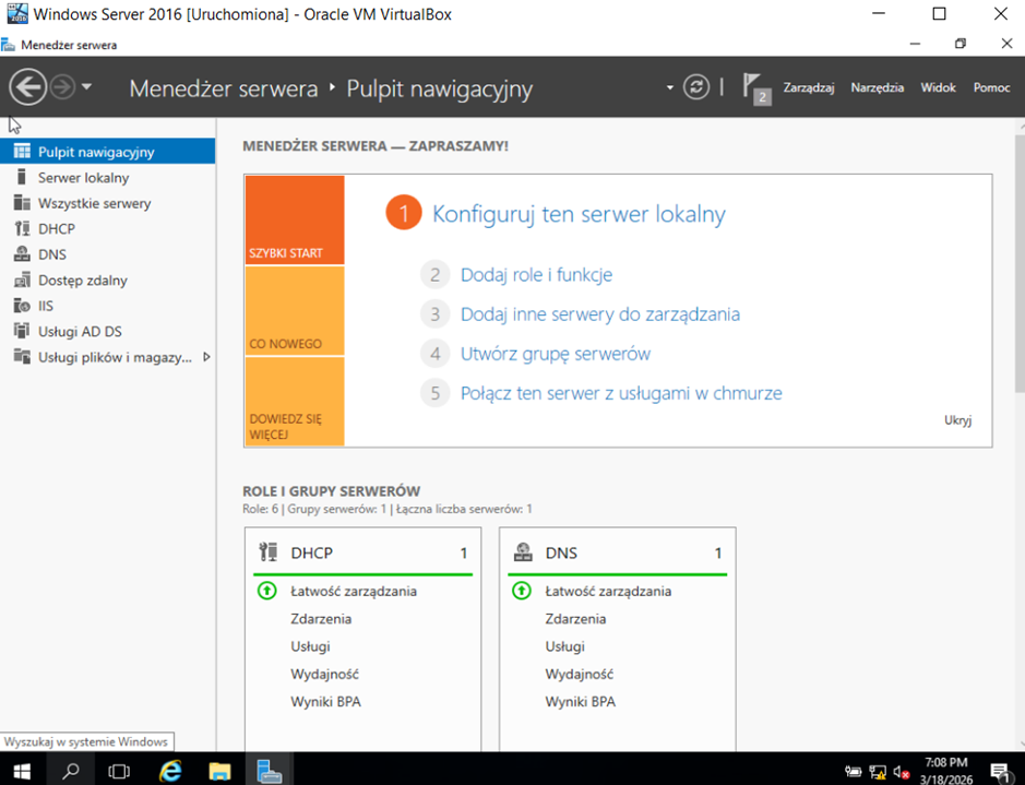 Uruchamiamy „Menedżer serwera” i wybieramy „Dodaj role i funkcje”